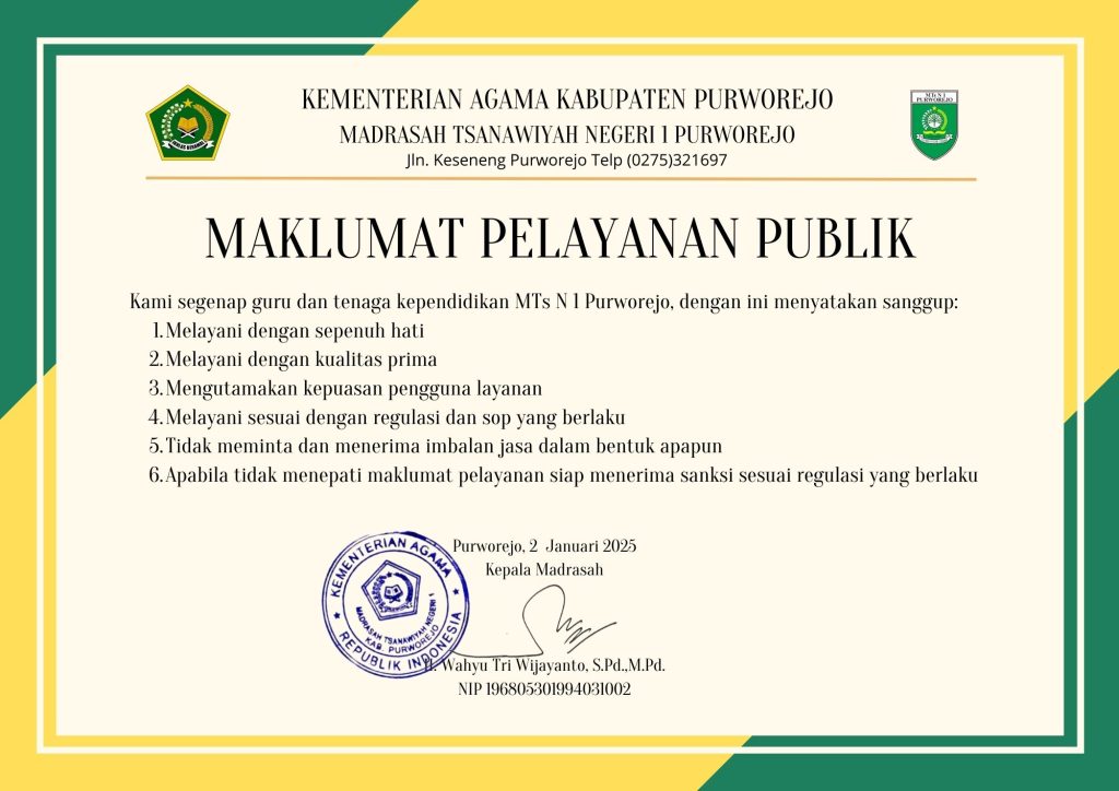 Kami berkomitmen untuk memberikan pendidikan terbaik bagi siswa-siswi kami. Kami menjalin kerja sama dengan orang tua dan masyarakat untuk menciptakan lingkungan belajar yang kondusif. Mari bergabung dan wujudkan impian bersama di MTsN 1 Purworejo!